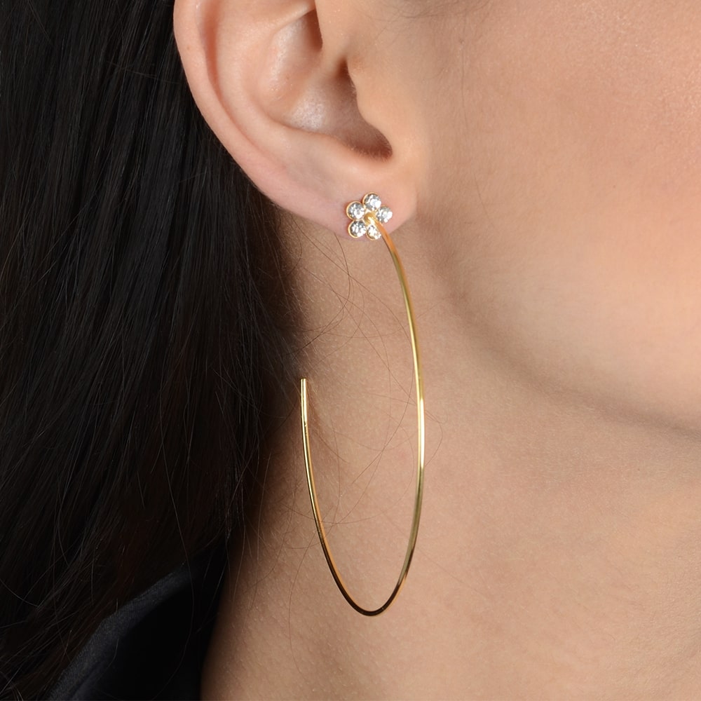 Brinco Dourado Grande de Argola com Detalhe de Flor em Strass