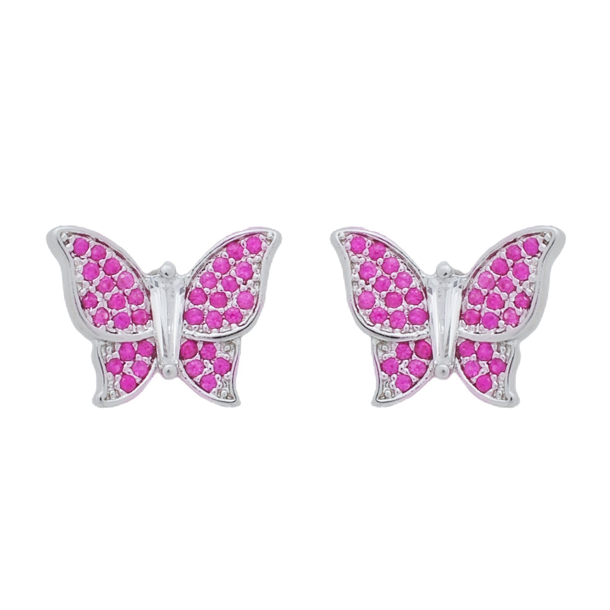 Conjunto Prateado de Borboletas Cravejado de Zircônia Rosa