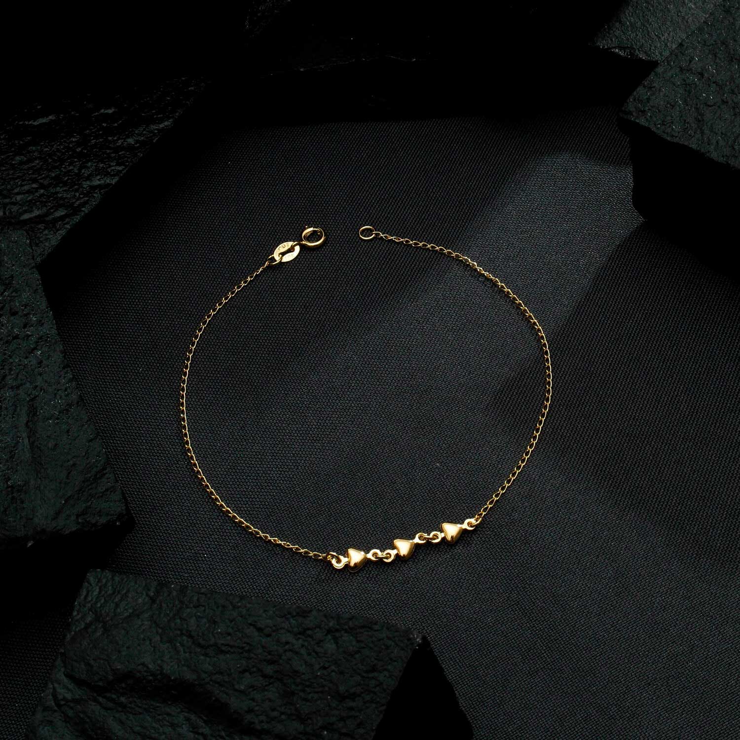 Tornozeleira Dourada 3 Corações Lisa